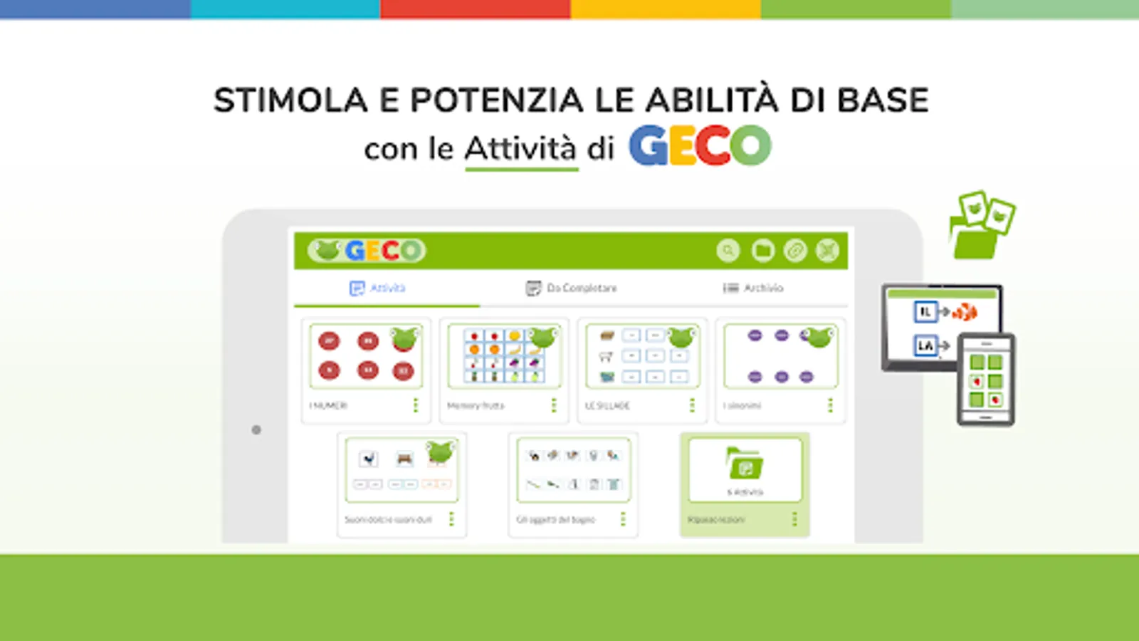 GECO Activities is an app suitable for preschool and primary school children and has the following features: