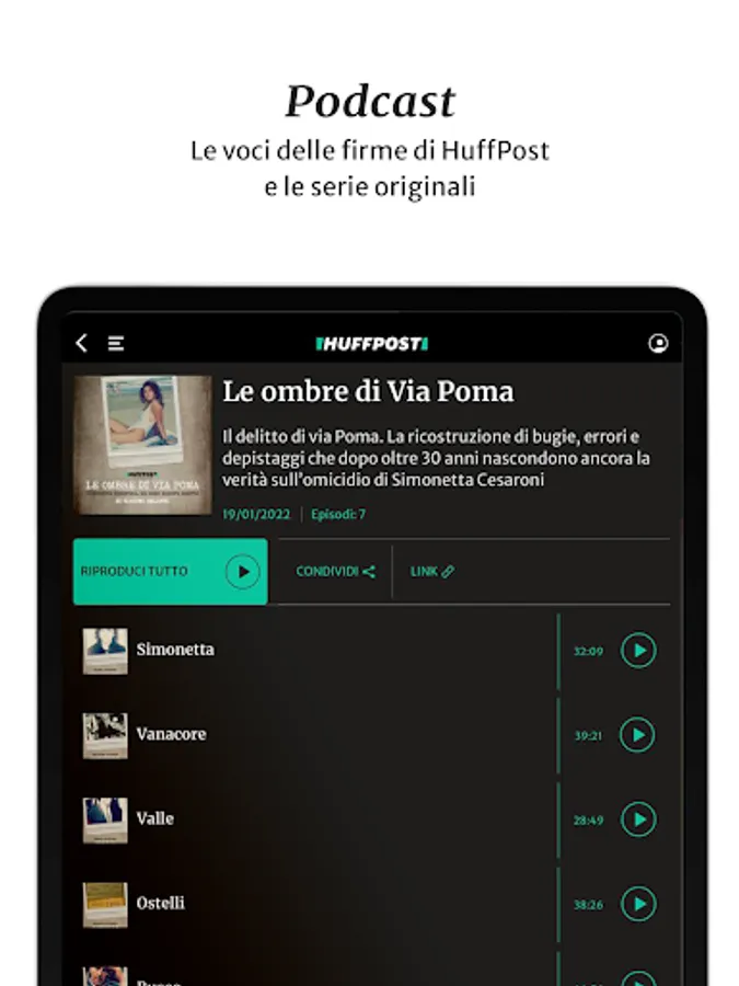 PODCAST - offers you moments of information and entertainment: listen wherever you are to the articles of the newspaper and the original podcasts by HuffPost