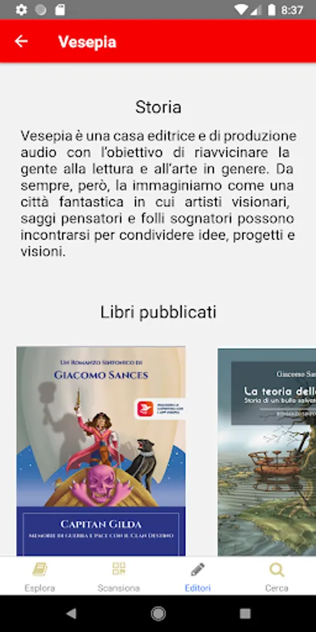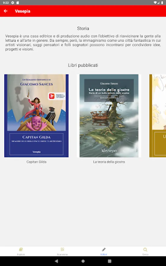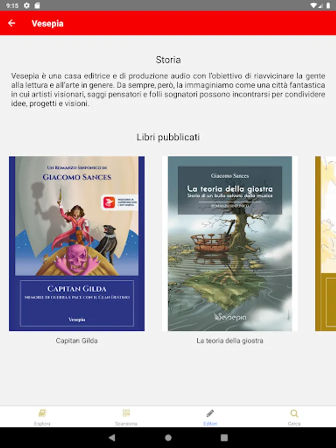 This is the official application of Vesepia, fledgling publishing house and audio production that aims to bring people to reading, not through the usual library products, but making them more attractive because it combined with symphonic music through the most modern forms of interactivity. So we combined the paper book, symphonic music and other digital innovations making them flow in a library product that we wanted to call Symphonic Novel.
