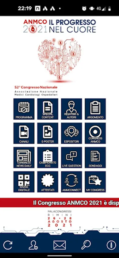 Applicazione ufficiale del 51° Congresso ANMCO 2020, in programma dal 27 al 29 agosto a Rimini, per la fruizione di tutti i servizi offerti al Congresso.