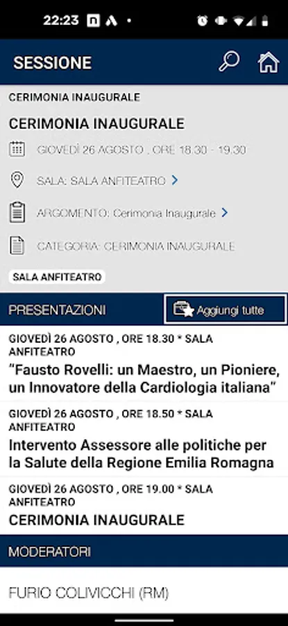 La funzionalità My Congress permette di salvare l’orario e la sala in cui si terranno le Presentazioni di proprio interesse.