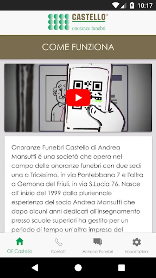Onoranze Funebri Castle Mansutti Andrea is a company that operates in the funeral with two locations one in Tricesimo, via Pontebbana 7 and the other in Gemona del Friuli, Via Santa Lucia 76.