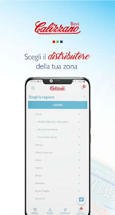 Booking request and home delivery dedicated to the customers of the Bevi Calizzano Mobile App.