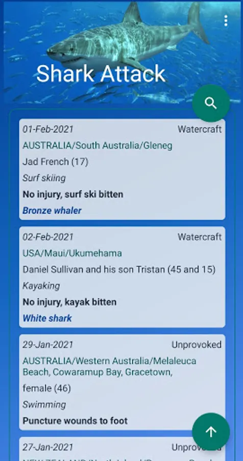 App for real sharks lovers, that shows all attacks happened all over the world and in all times, from year 0 till now!