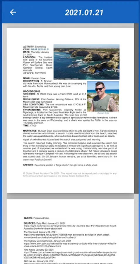 I really must say thanks to Global Shark Attack File (https://www.sharkattackfile.net/) for his great work in documenting these cases and collecting them in his free db!