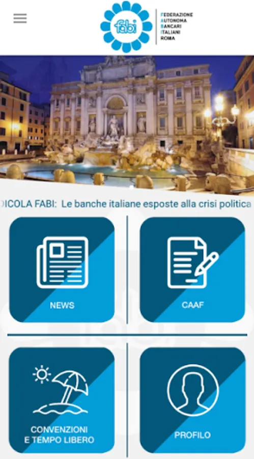 The FABI app in Rome offers subscribers to the Rome Autonomous Banking Union and the province the opportunity to receive free news on their mobile device news and communications on trade union activity in the sector and in their own company. There are also sections dedicated exclusively to members regarding services offered as CAF, patronage and legal assistance, as well as a special section dedicated to conventions, with advantages also for friends and relatives.