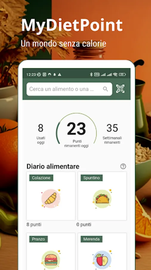 MyDietPoint represents the definitive solution for personalized and effective management of your diet. Our extremely intuitive application uses a scanning system that automatically calculates the food points (DietPoint), simply by scanning the barcodes on each product.