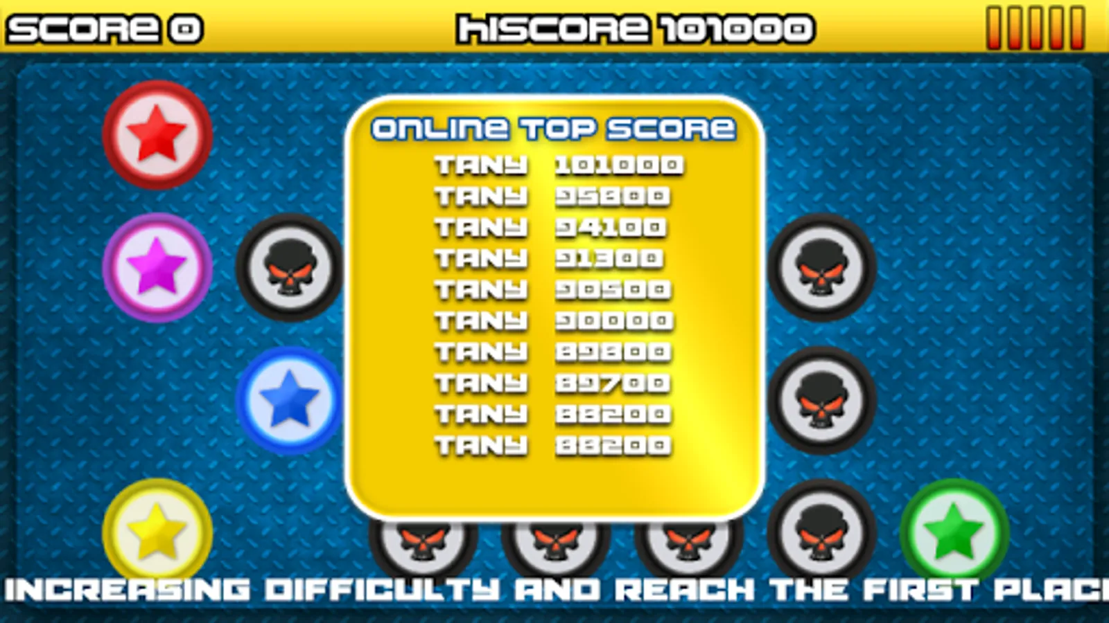 Get through increasing difficulty and reach the online top score position.