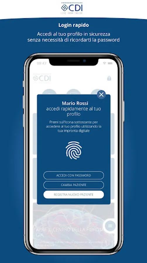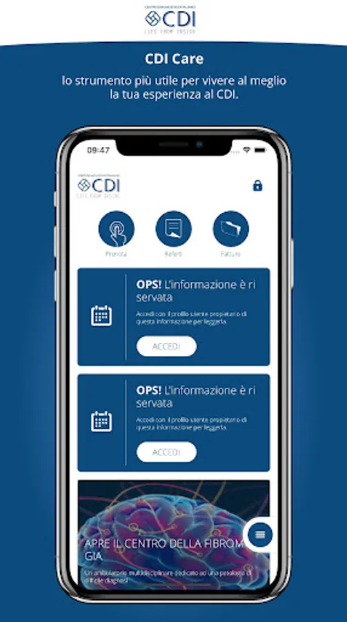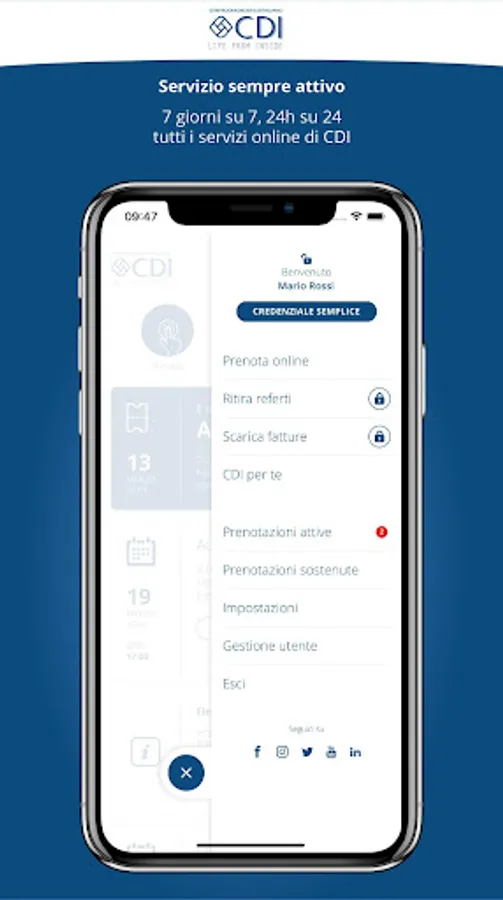 Access: download the app and log in with your credentials. If you are a new user you can register via the app. If you want to access all CDI services, request activation at our offices.
