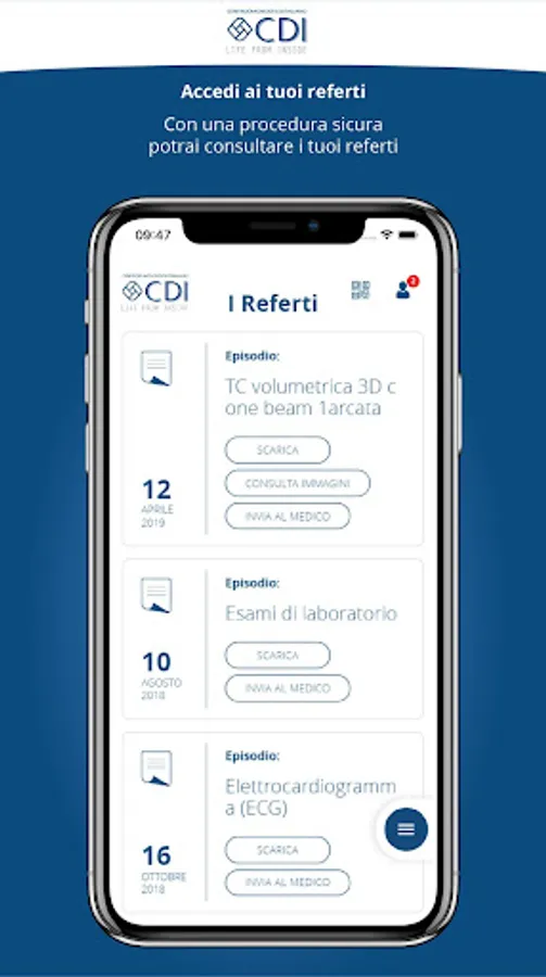 Manage mobile reports, you can download them and send them directly to your doctor. You are always up to date, receive notifications, communications and personalized information.