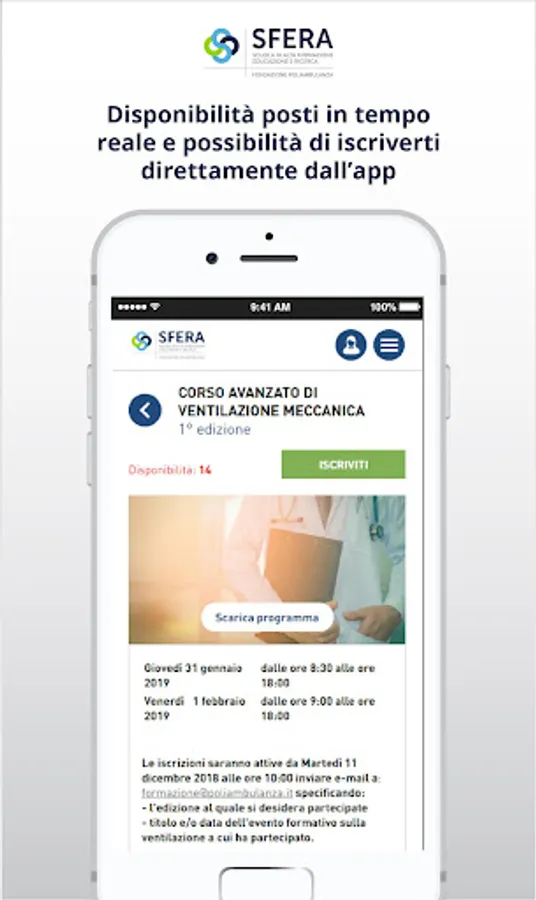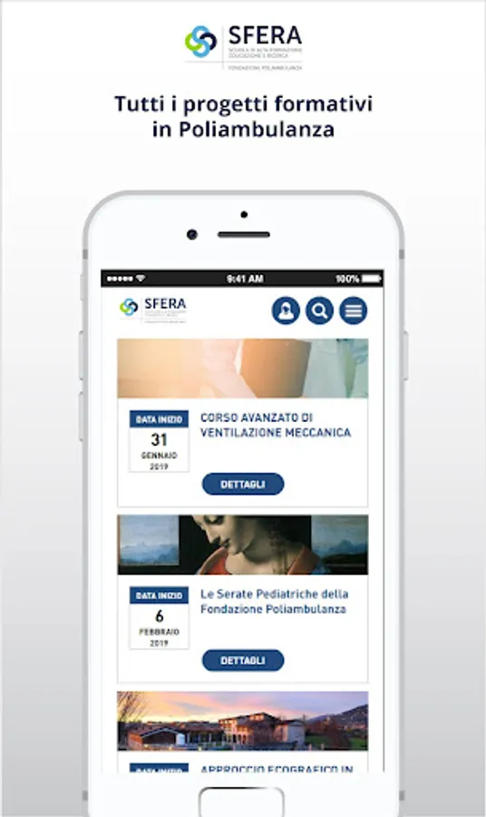 SFERA, School of Higher Education Training and Research of Poliambulanza Foundation, is also ECM provider and the training offer is addressed to all professions, health and non.
