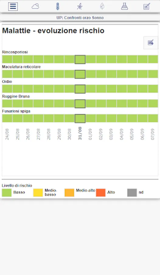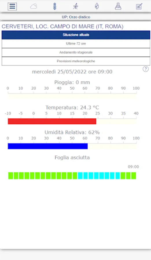 Designed for two-row barley producers in the Peroni High Quality Supply Chain, this app allows for simplified access to the Peroni barleybeer service when accessed from mobile devices. Access to Peroni barley beer from the app provides the most frequently used functions of the DSS, such as: weather, phenology, nitrogen fertilization and risk of fungal diseases. The latter in particular presents the output of the Peroni barley beer mathematical models in a simplified and more rapid consultation format, combining the practicality of use from mobile devices with the recognized scientific reliability of the Peroni barley beer models.