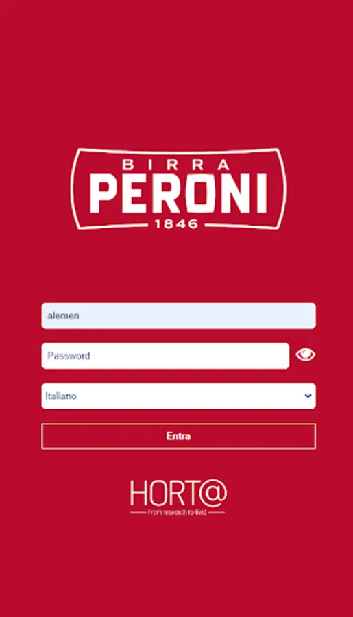 1. a Peroni orzobirra user can access the service by logging in with the same credentials either from the Horta srl portal or through the app;