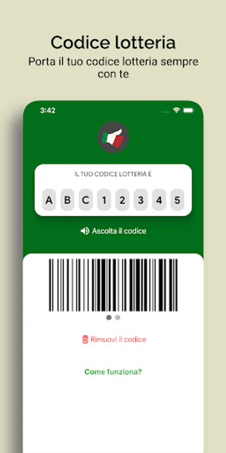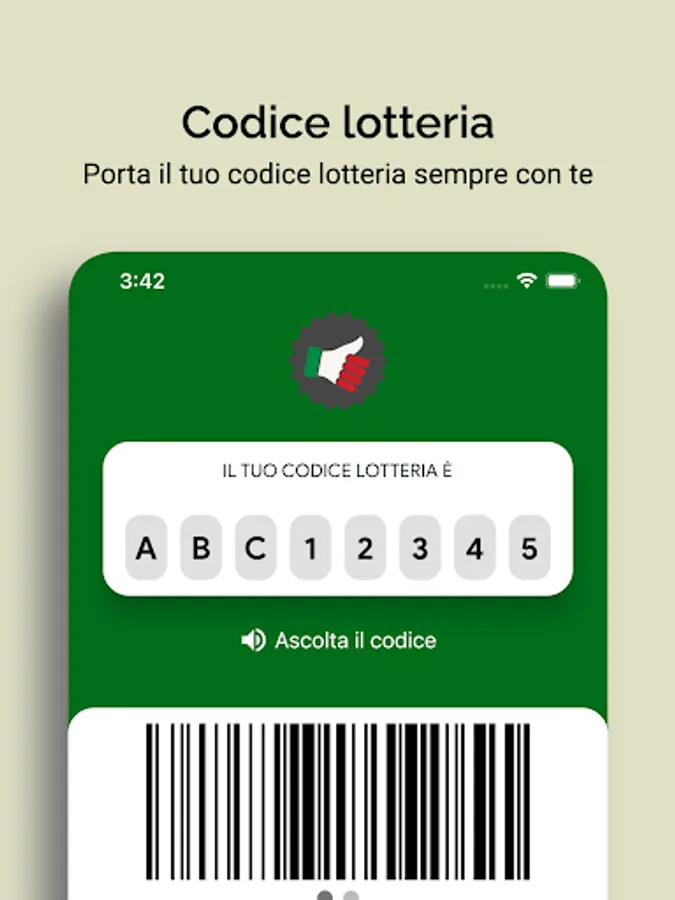 With Receipt Lottery, you can store your lottery code generated by the government site and always carry it with you to show it at every purchase made with electronic payment. You will be able to view your lottery code in QR-Code, Barcode and Alphanumeric Code format.