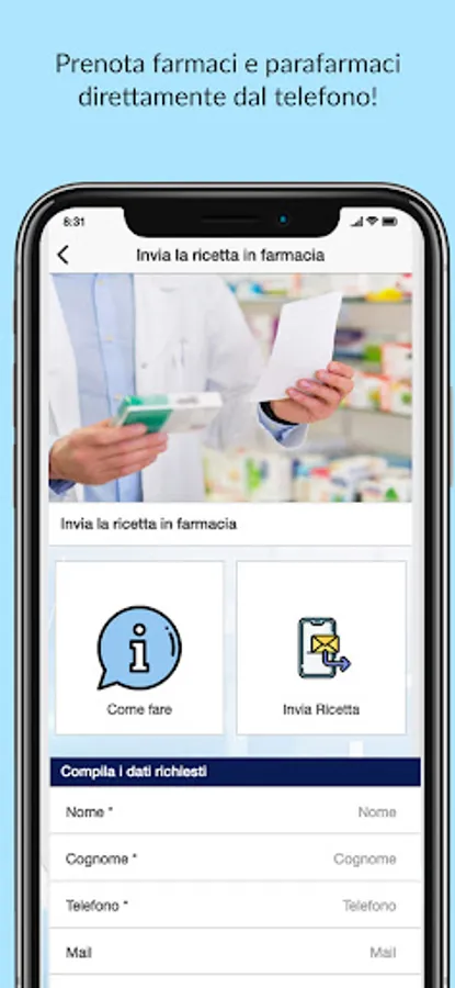 Discover the services of the pharmacy, directly from the App, take advantage of the Discounts and Discounted Items, Book a drug and send a prescription.