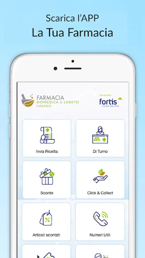 Download the App of the Biomedical and Loreto Pharmacies of Lugano.