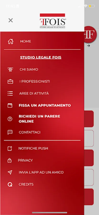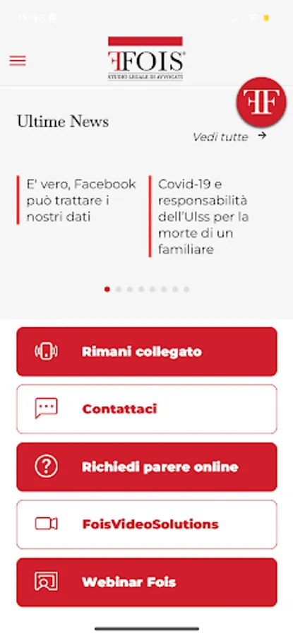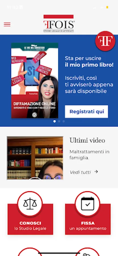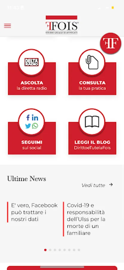 Download the new official APP of the Fois Law Firm to always stay in touch with Lawyer Fulvia Fois and her team of professionals, for over 20 years specialized in family law, criminal law, labor law, real estate auctions, leases and condominiums , debt collection, road accidents and malpractice.