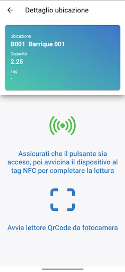 iWine Reader is the app of the APRA SPA iWine suite dedicated to the management of signs in the cellar. It allows using NFC or QR-CODE tag to identify each single location and explore its content. The management of the sampling samples and the association of the locations with the relative identification tag complete the app.