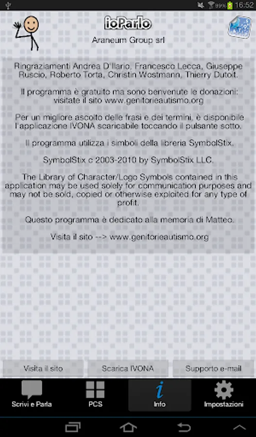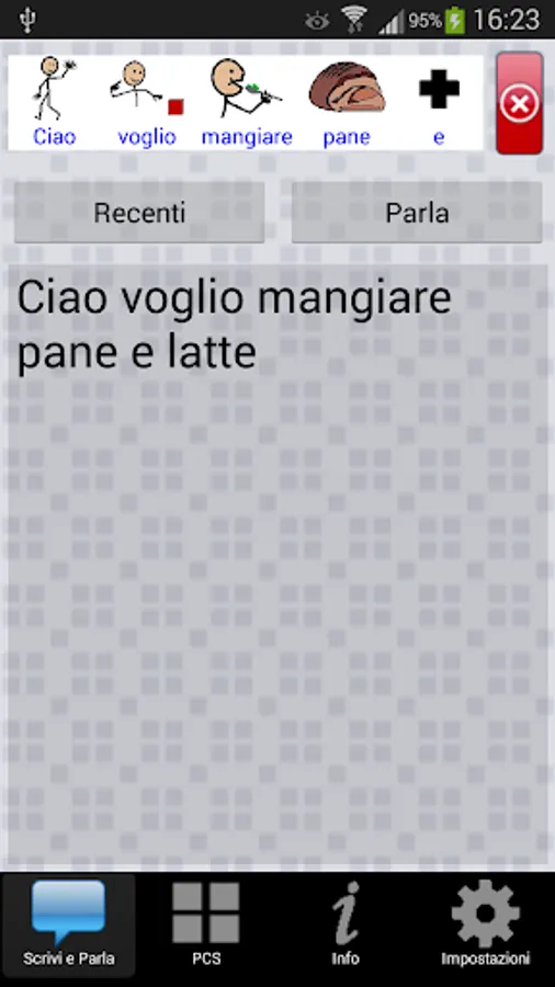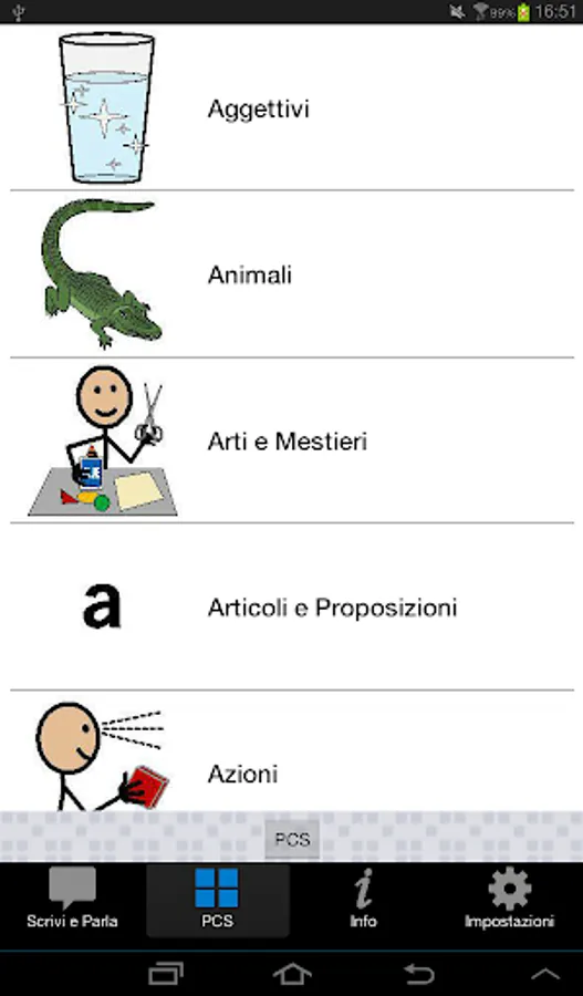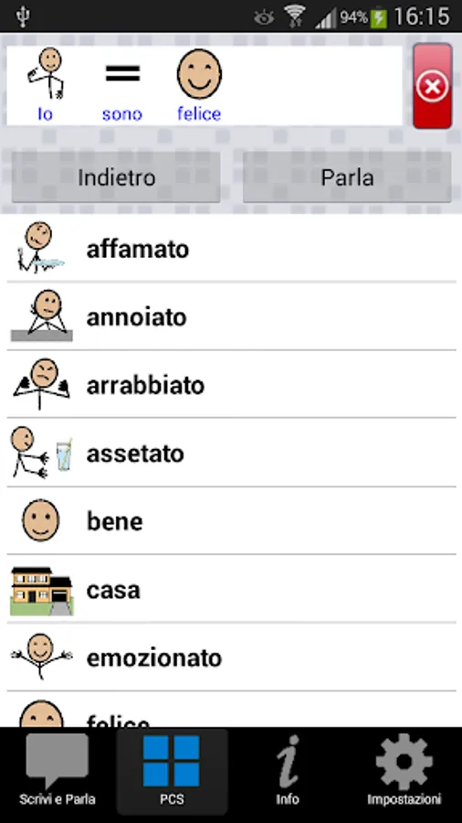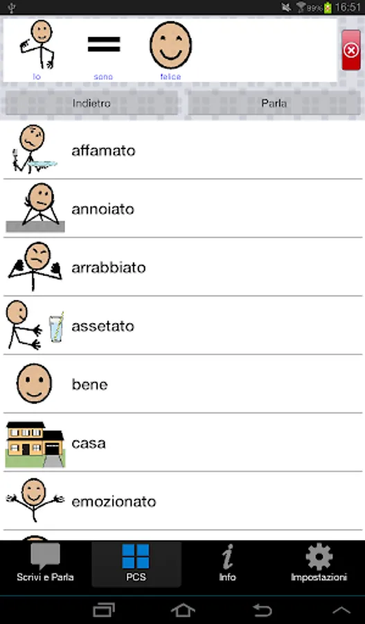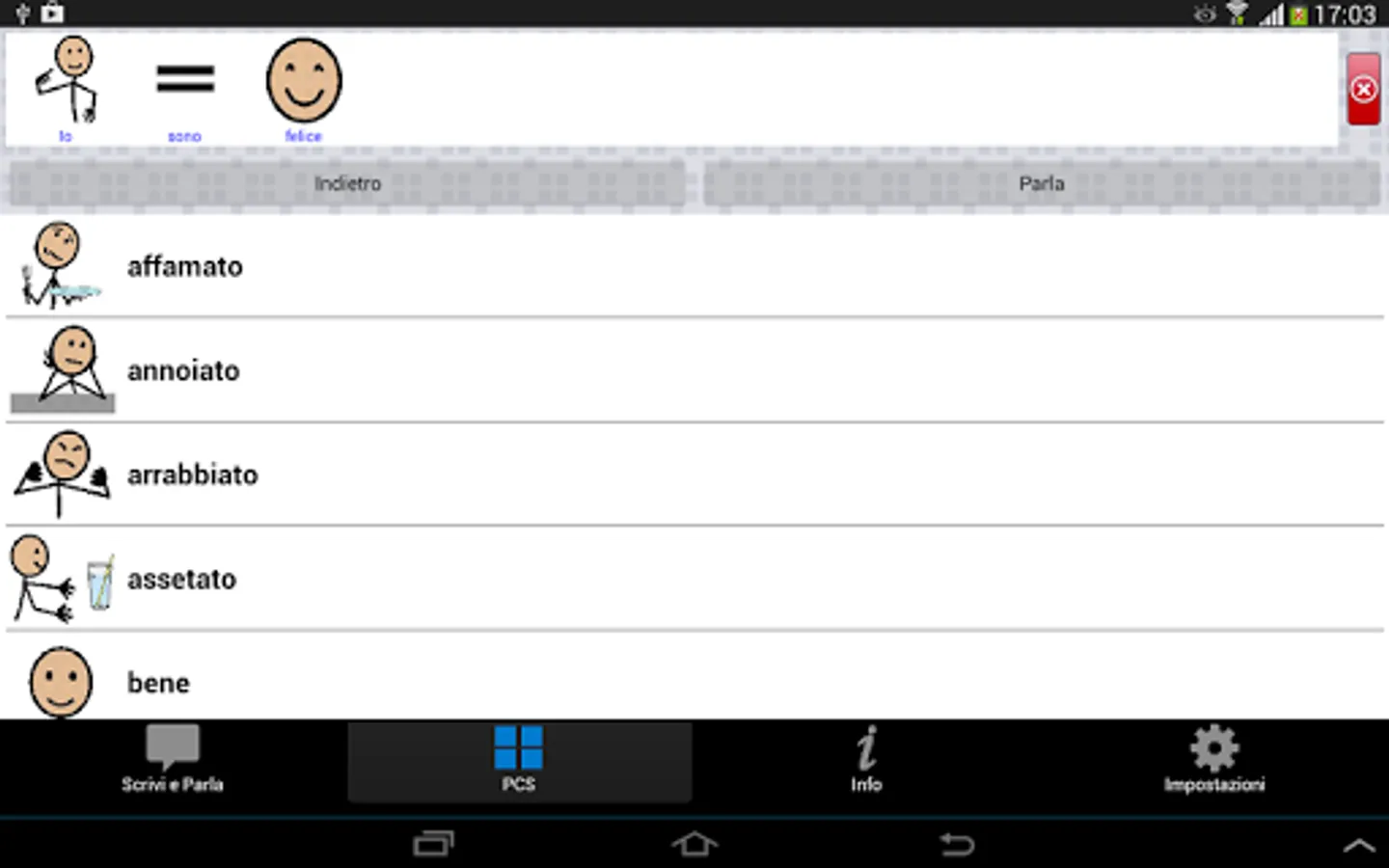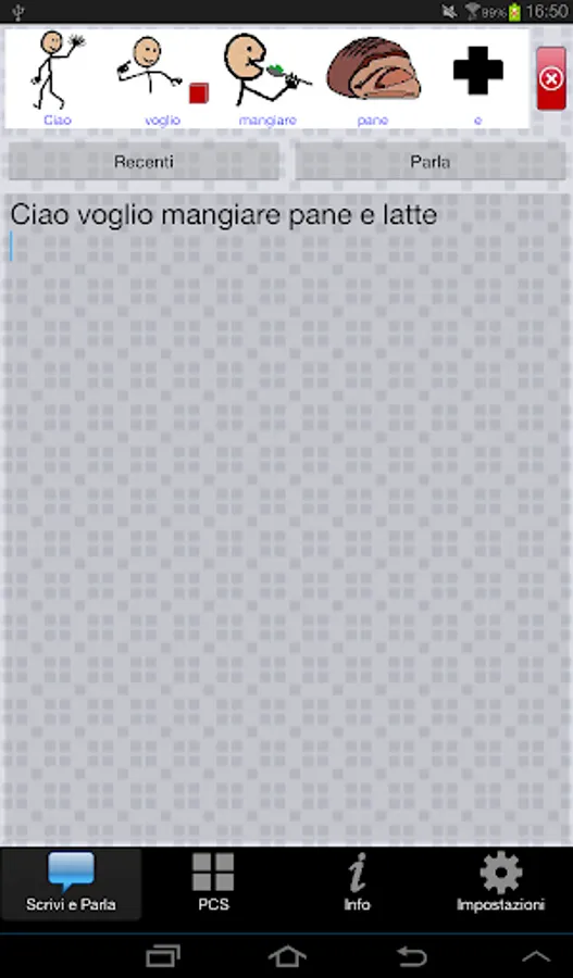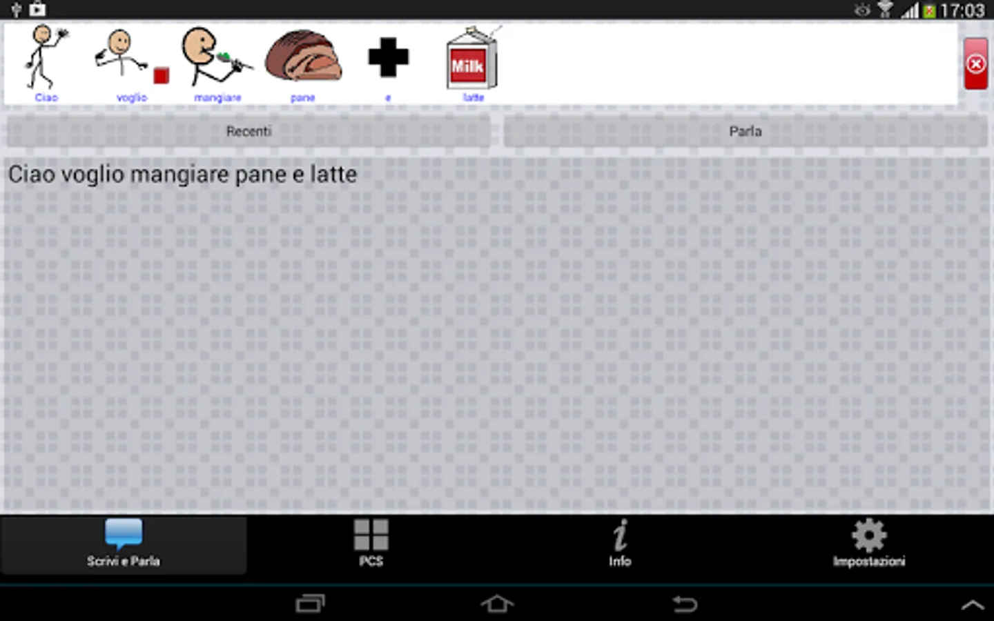 Thanks to the symbol library of PECS SymbolStix, you can write sentences, listen to the synthesized voice and display symbols corresponding graphs.
