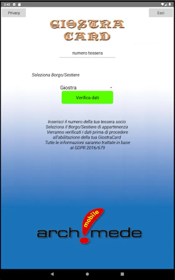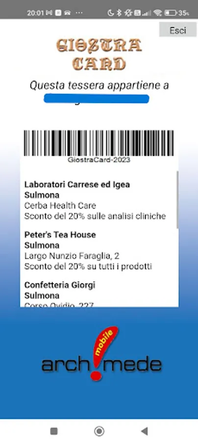 The application shows the conventions activated by the Giostra Cavalleresca for its members and those of the villages and districts. It costs ten euros and allows all members who request it to have discounts of up to and beyond 20%.