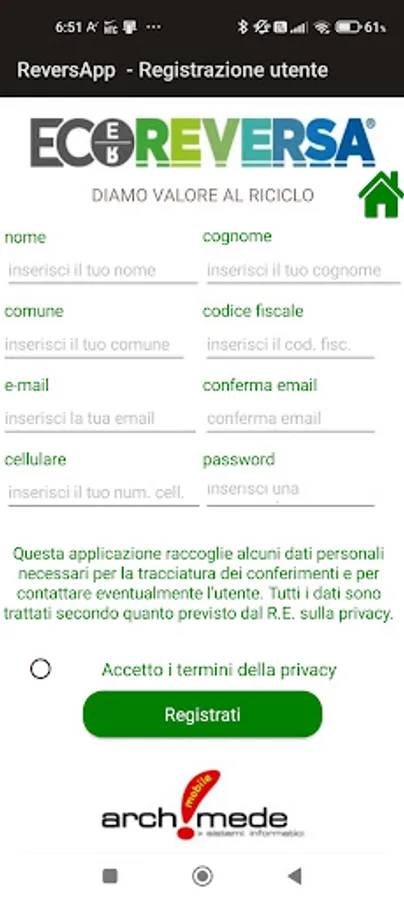 App for the management of EcoPoints obtained from the deposit of plastic bottles at the compactors of Innovation srl