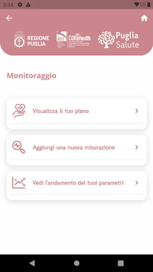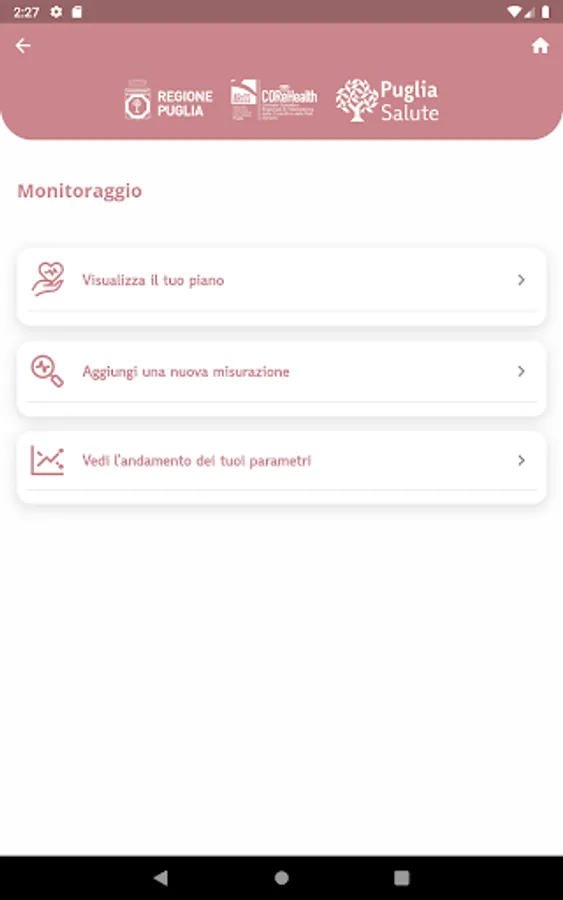 The application of ARESS available to Apulian citizens enrolled in structured courses. It provides a series of functions that allow interactions with your care team, through televisions, sending your parameter trend diaries, health questionnaires, consulting your monitoring plan. The app also keeps users updated on the pathology and news regarding the COReHealth project