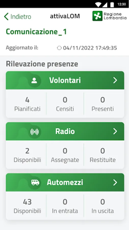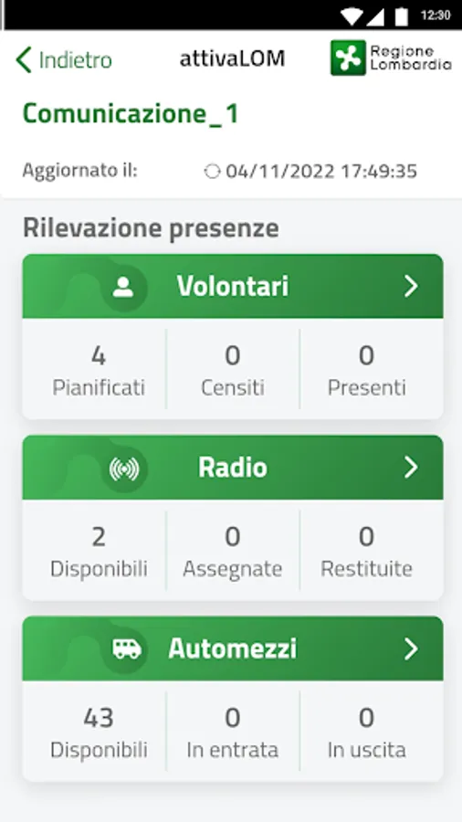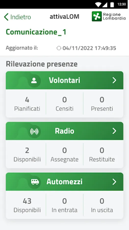 ACTIVELOM allows the Civil Protection operators of the Lombardy Region, in the event of a calamitous event, to be able to manage the daily attendance and any vehicles / materials in use in addition to the loan of the radios