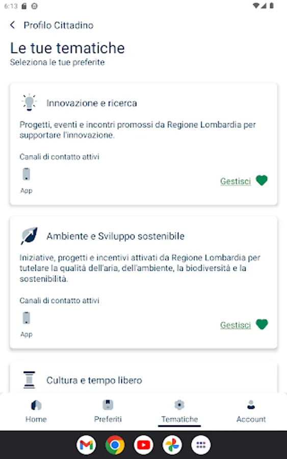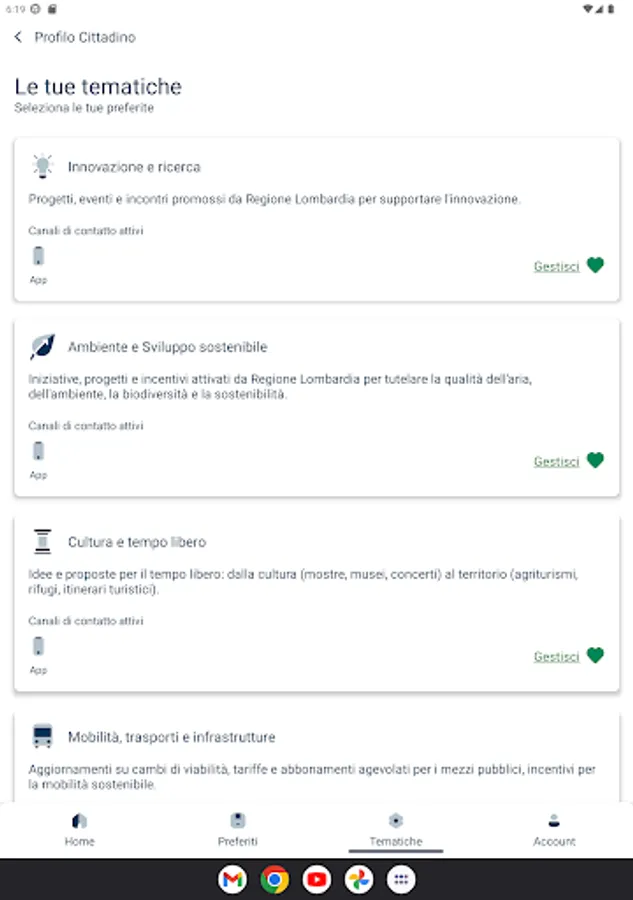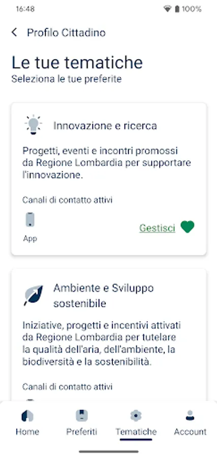 Select your profile (citizen, company, institution and operator), indicate where you want to receive the news (email, SMS, app) and activate your preferences on the various topics available: notices, contributions and competitions, environment and sustainable development, education, training and work, culture, leisure and tourism and more.