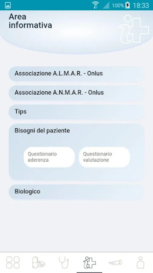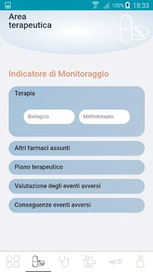 The application provides a correct and immediate accessible information on the recognition of symptoms connected to the pathology of osteoporosis avoiding the risk of fracture through the possibility of prevention, an early diagnosis and a correct lifestyle. It also provides tools for the acquisition of healthy habits and lifestyles, discouraging harmful behavior by promoting adherence and therapeutic appropriateness.