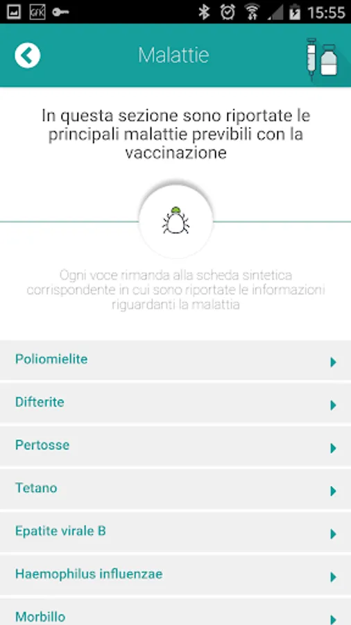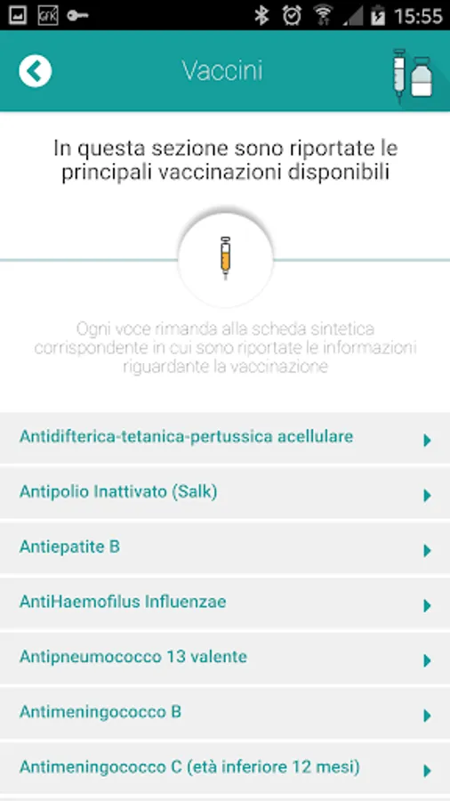 The APP Vaccines Rieti is offered by the Azienda Sanitaria of Rieti, with the intention of providing a new tool to citizens, useful for greater information and organization on vaccinations. It offers support and information about diseases now preventable by vaccination; It also contains information sheets on all the available vaccines, required and recommended. The vaccination schedule feature allows you, from the date of birth place, to view the executable vaccinations by age group. Another function allows you to view all vaccination sites in the Province of Rieti, locate them on a map and access all available contact information. This tool, free to all users, goes in the direction of the law on compulsory vaccination, supporting the national immunization strategy.