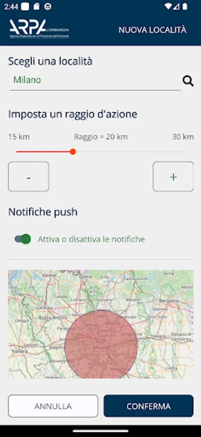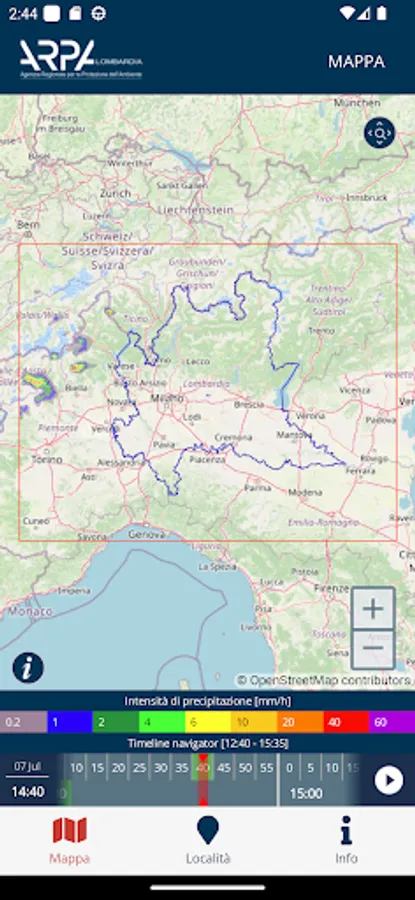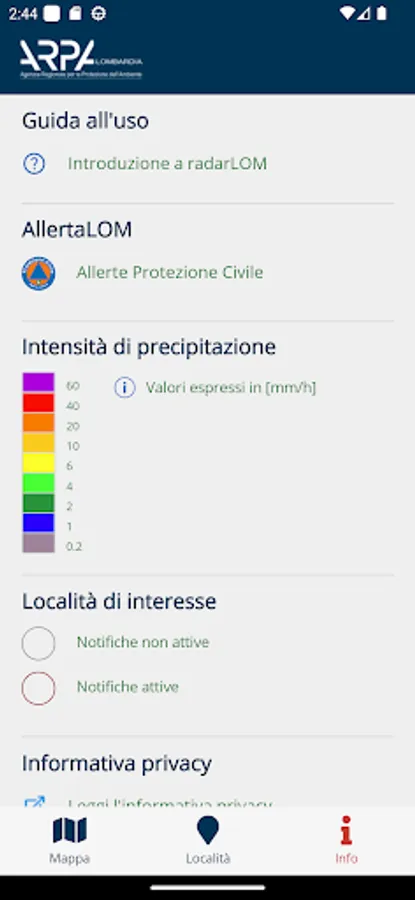 radarLOM is the ARPA Lombardia mobile app designed to display X-band radar network data and send early warning messages via push notifications.