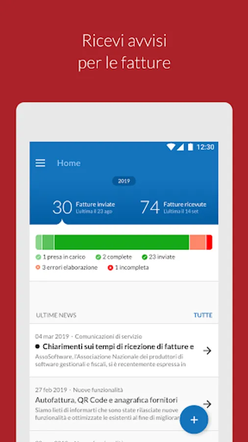 The app includes all the main features of the Aruba Electronic Invoicing service.