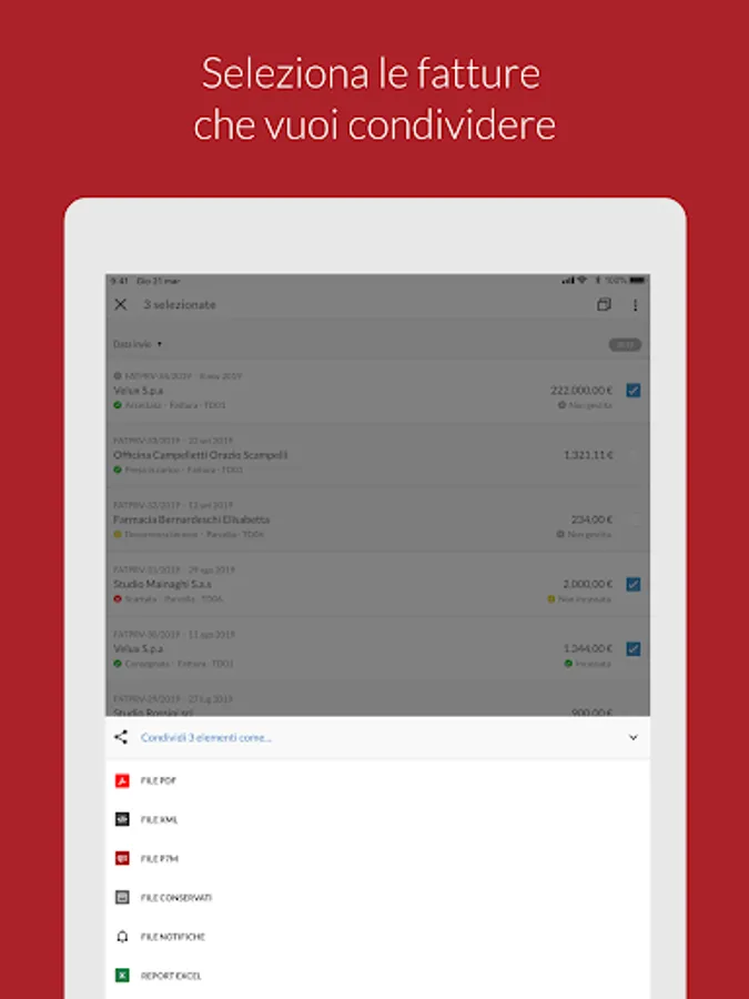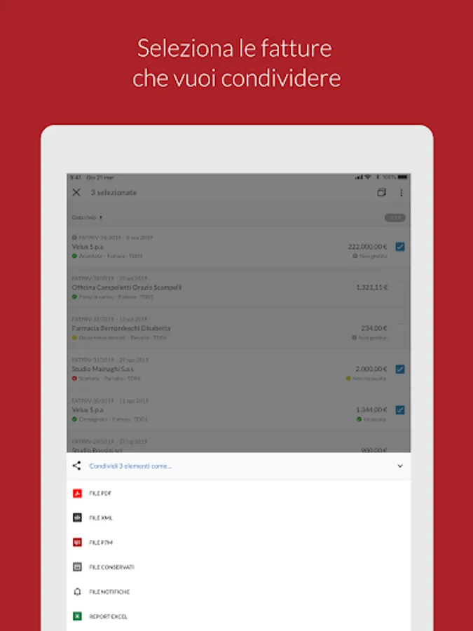 Purchase and activate Electronic Invoicing from: https://www.pec.it/acquista-fatturazione-elettronica.aspx and download the free app to have everything within reach of your smartphone and tablet.
