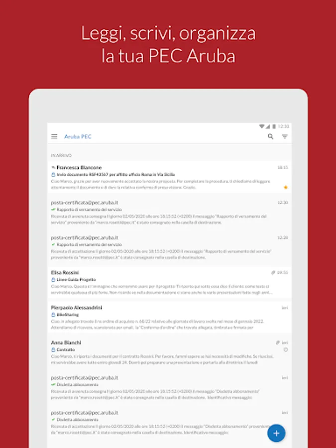 Aruba PEC is Aruba's free application, which allows convenient and simple management of PEC mailboxes even from smartphones and tablets.