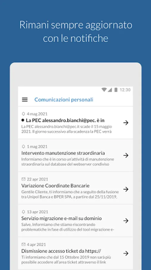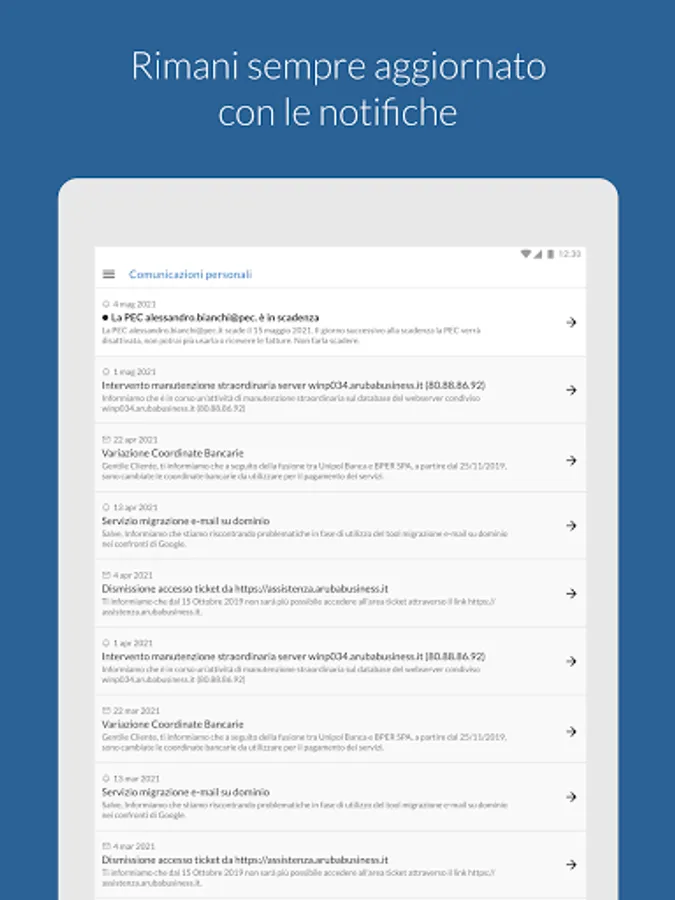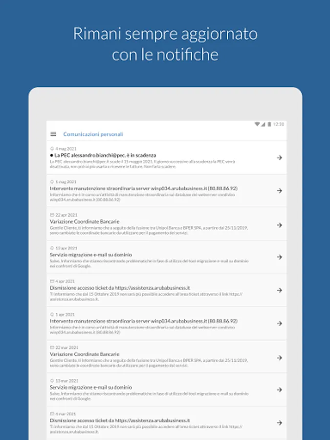 The application allows you to view general communications and personal communications, contact Aruba Business support and quickly enter the Aruba Business Management Panel. To log in, you must have an Aruba Business account.