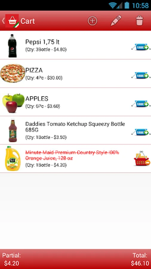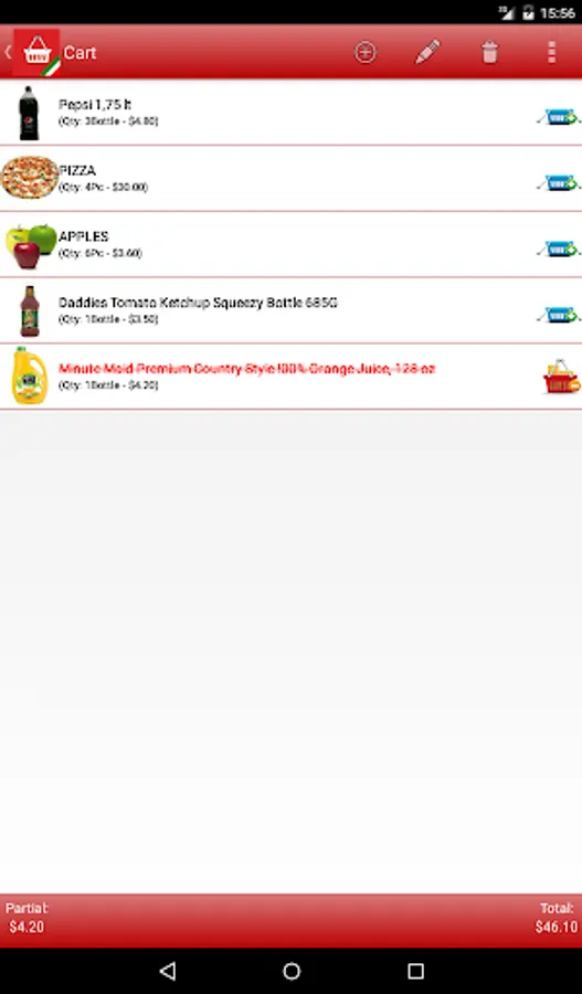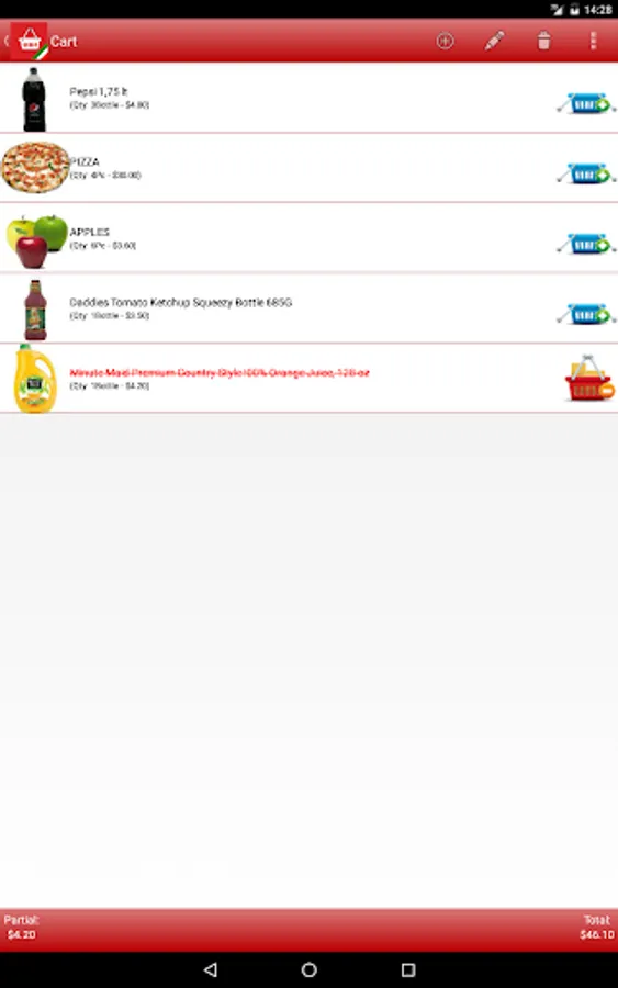 4) Cart: the "striped" products, that is taken, are synchronized with other devices.