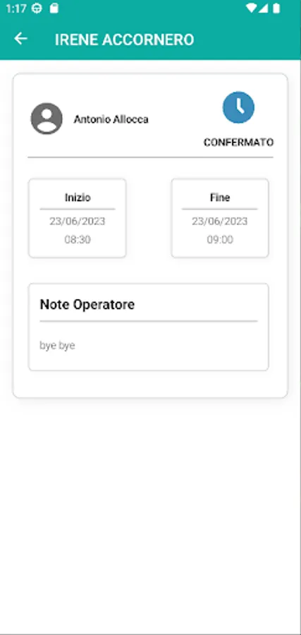 Of fundamental importance, the content within the appointment details page which, through a section dedicated to the "Notes", can inform the Caregiver of precautions, of measurements made on the user, of particular attention on that day, which can allow keep the situation constantly monitored, limiting forms of stress and burnout to which the caregiver is often subjected. Thus, the caregiver can be informed of changes in the planned activities and always have at hand a history of the interventions carried out on the user and of the operator who intervened on the user.