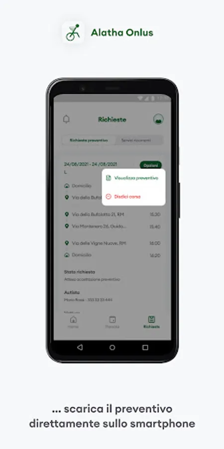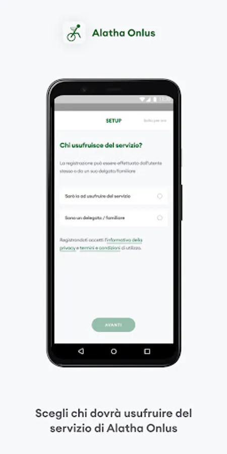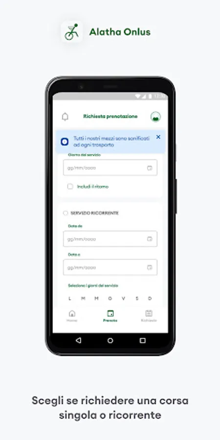 Alatha Onlus is a social cooperative active since 1995 to make life easier for everyone through projects, activities and services aimed at the inclusion of people with reduced or impaired mobility. The ALATHA TRANSPORT AND ASSISTANCE service, the only one active in Italy since 1995, is the heart of all the social activities of the cooperative. It consists of a PERSONALIZED service to accompany people with disabilities or problems of autonomy, the elderly or those with temporary mobility difficulties, FROM HOME TO THE REQUESTED DESTINATION, with the possibility of requesting a wheelchair or other portable aids on loan, as well as BARRIER OVERCOMING intervention The ALATHA TRANSPORT AND ASSISTANCE service, the only one in Italy active since 1995, is the heart of all the social activities of the cooperative. ARCHITECTURAL through a special PORTABLE STAIRCASE CHAIR, upon prior reservation.