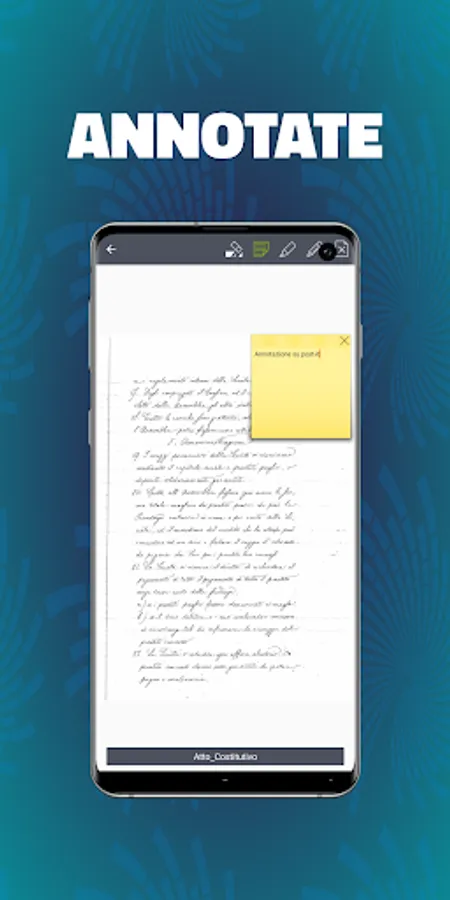 • Annotations (only visible by the user) can be added to PDF documents, without modify the original format. They will be shared to all user devices.