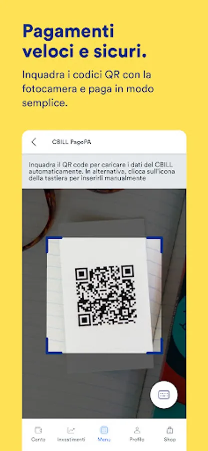 By framing the QR codes with the camera, you can make fast and secure payments also for: pre-marked postal bills, MAV, RAV, CBILL,