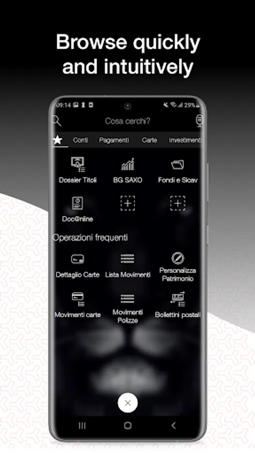 Keep track of your assets in a few seconds, using your finger or your voice! You can also manage your payments and transfers, in Italy or abroad, top up your phone credit and trade.