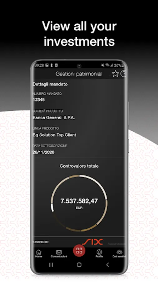 Easy, innovative, with cutting edge interface and functional solutions. With the Banca Generali Private app you can safely log-in with the most advanced recognition systems (Fingerprint or Face ID) to manage your account on your own, wherever you are.