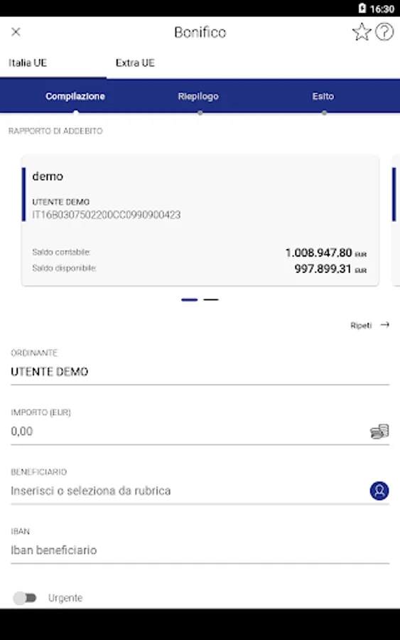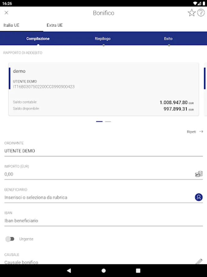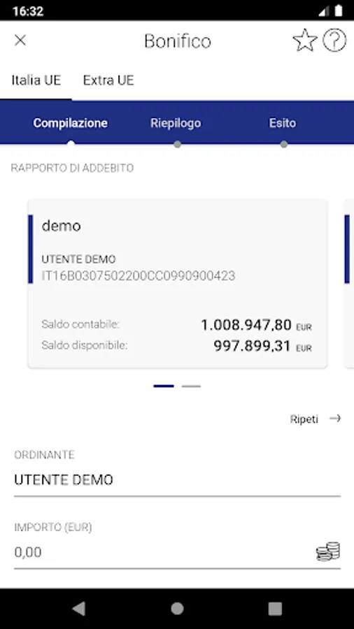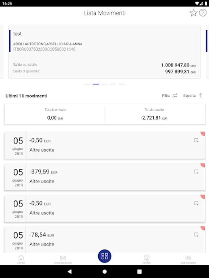 Security is guaranteed by the use of Strong Authentication and by the possibility of activating the fingerprint or facial recognition for devices equipped with these features.