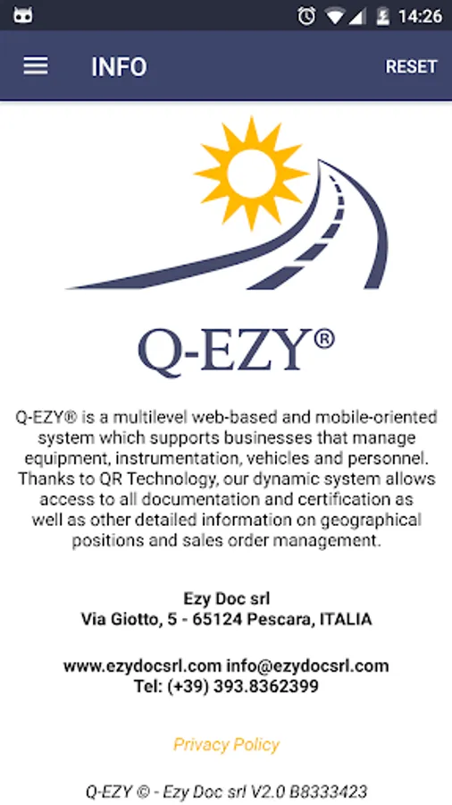 Q-EZY® is a multilevel web-based and mobile-oriented system which supports businesses that manage equipment, instrumentation, vehicles and personnel. Thanks to QR Technology, our dynamic system allows access to all documentation and certification as well as other detailed information on geographical positions and sales order management.