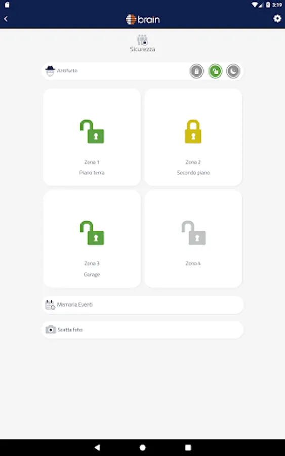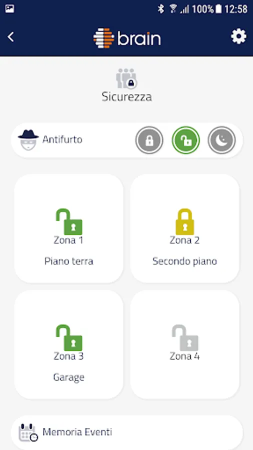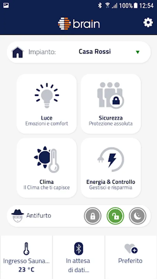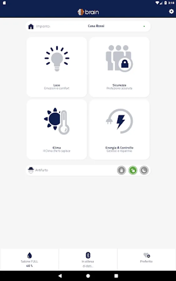 With the App Brain the control is total but above all immediate thanks to the subdivision of domestic themes such as Light, Sicurazza, Climate and Energy.