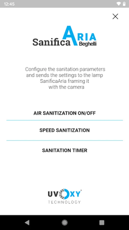 You can activate or deactivate the sanitation process, set the air fan speed in the uvOxy® sanitation cell and manage the sanitation times based on the environment and needs.