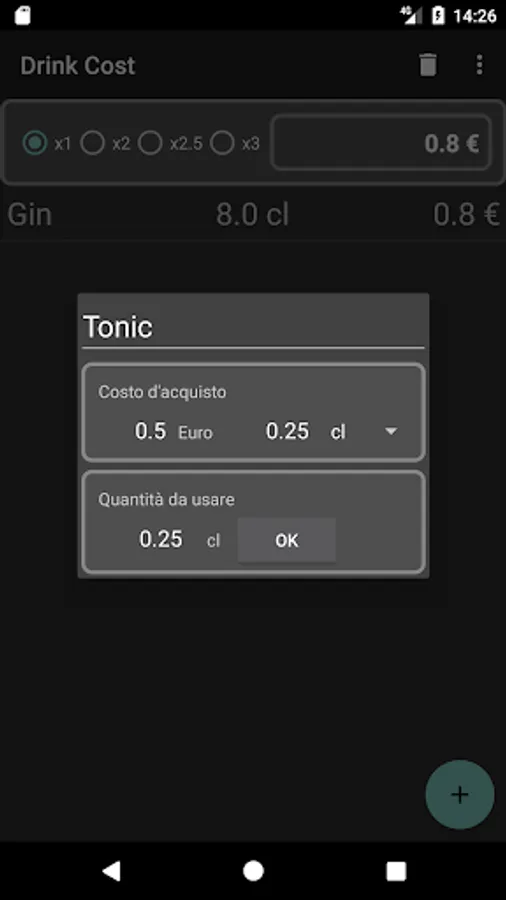 You just need to add the ingredient of the cocktail or the drink you want to calculate the cost and the bill is made