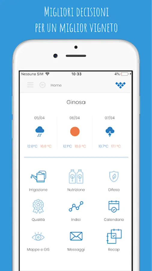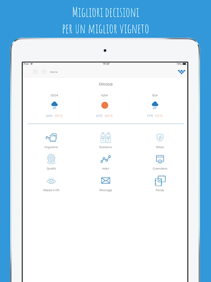 Blugrape is the innovative DSS designed for planning irrigation and fertilization of crops, designed for farmers, agronomists and more. Blugrape is technological innovation for Precision Agriculture, a product capable of optimizing the use of water by promoting eco-sustainability and eco-efficiency.