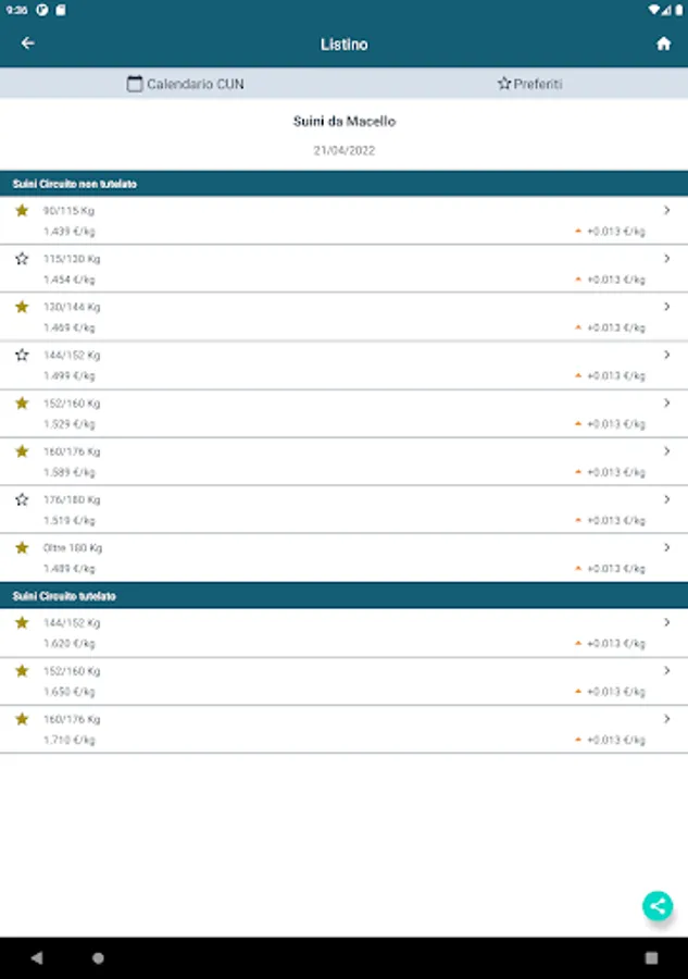 Finally, the CUN Info App allows you to share price lists through the most common messaging systems and social networks.