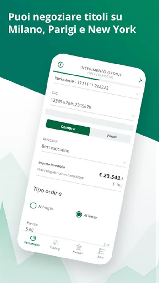 • Negotiate securities listed on the Italian Stock Exchange and Eurotix